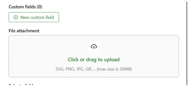 - Fill in the fields as needed, then scroll down to the Attachments section.